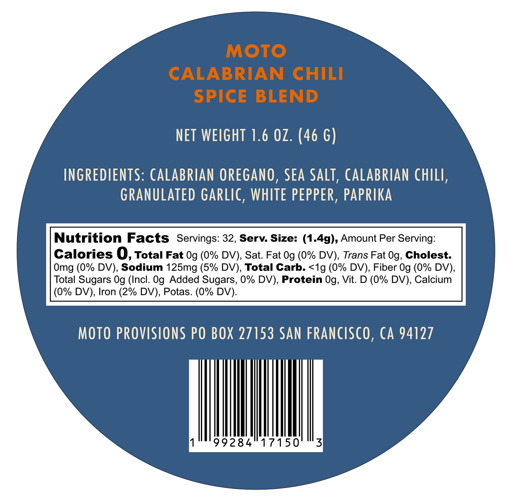 The dehydrated cousin of our MOTO Calabrian Chili Hot Sauce, this bold spice mix delivers smoky, herbaceous heat that transforms proteins, veggies, and more. Craft-blended in Northern California, it’s a pantry essential for adding depth and kick to everyday meals.