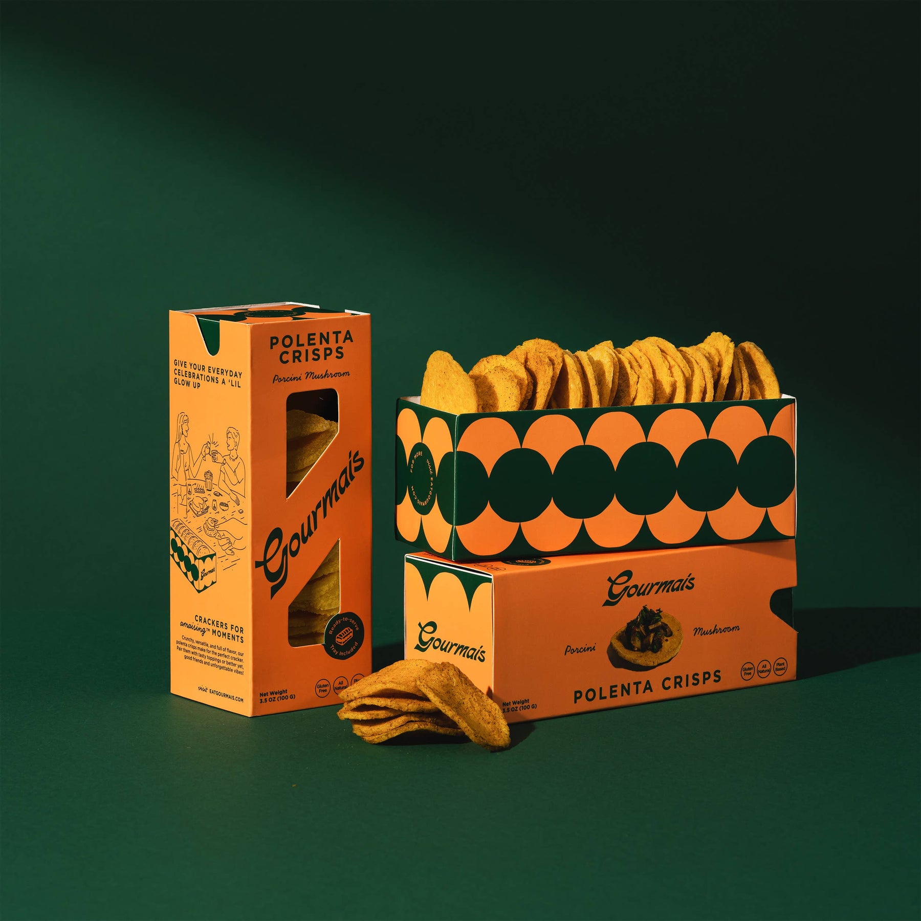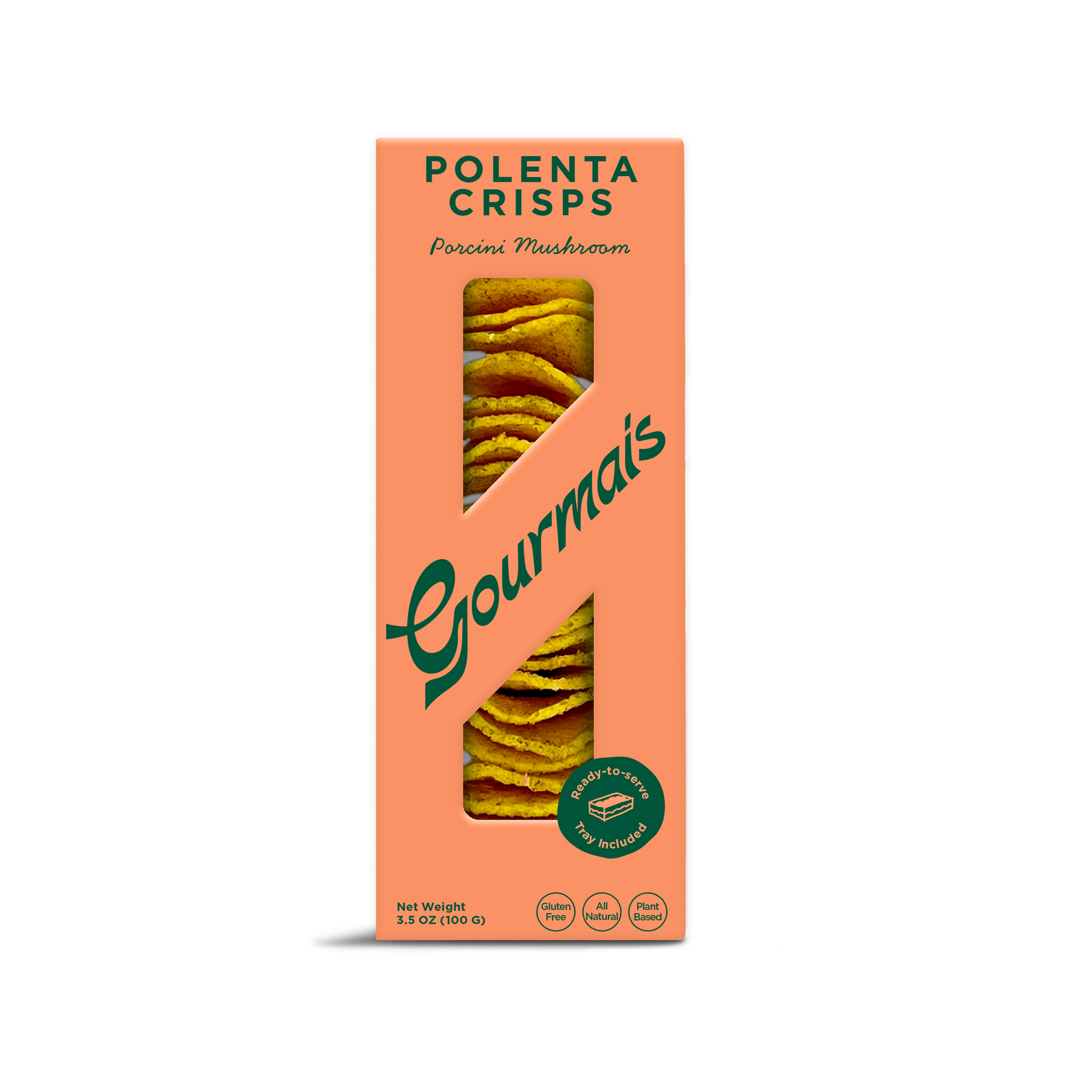 An umami and savory start with a subtle peppery finish. Inspired by the classic combination of mushrooms with polenta, these crisps are anything but traditional!