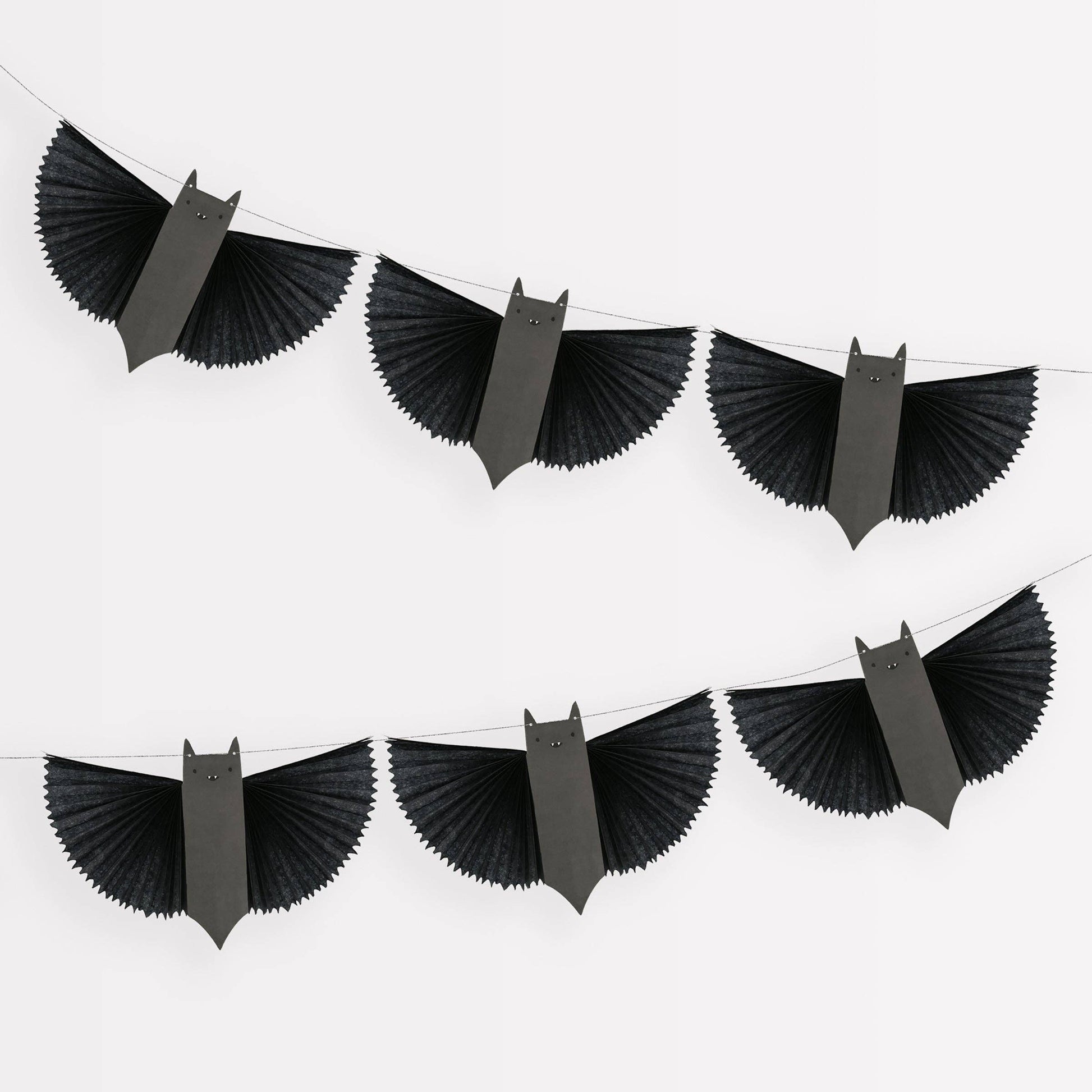 Bring a little spooky magic to your space with these playful paper bats! Each bat comes pre-threaded with shiny silver metallic cord and features black tissue paper concertina wings for a dramatic effect.